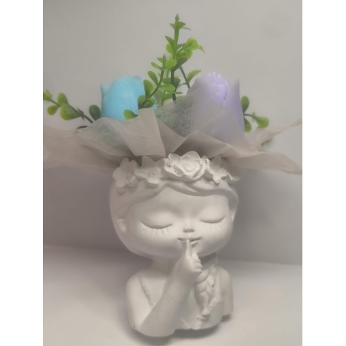 Букет с цветя в гипсокерамична кашпа „Момиче“ – нежен аромат и вечен спомен